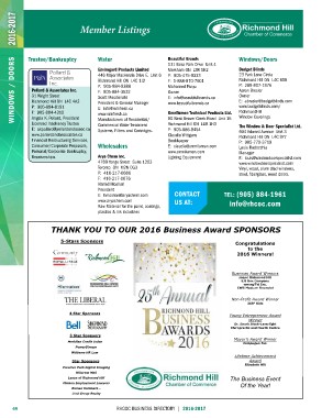 THANK YOU TO OUR 2016 Business Award SPONSORS